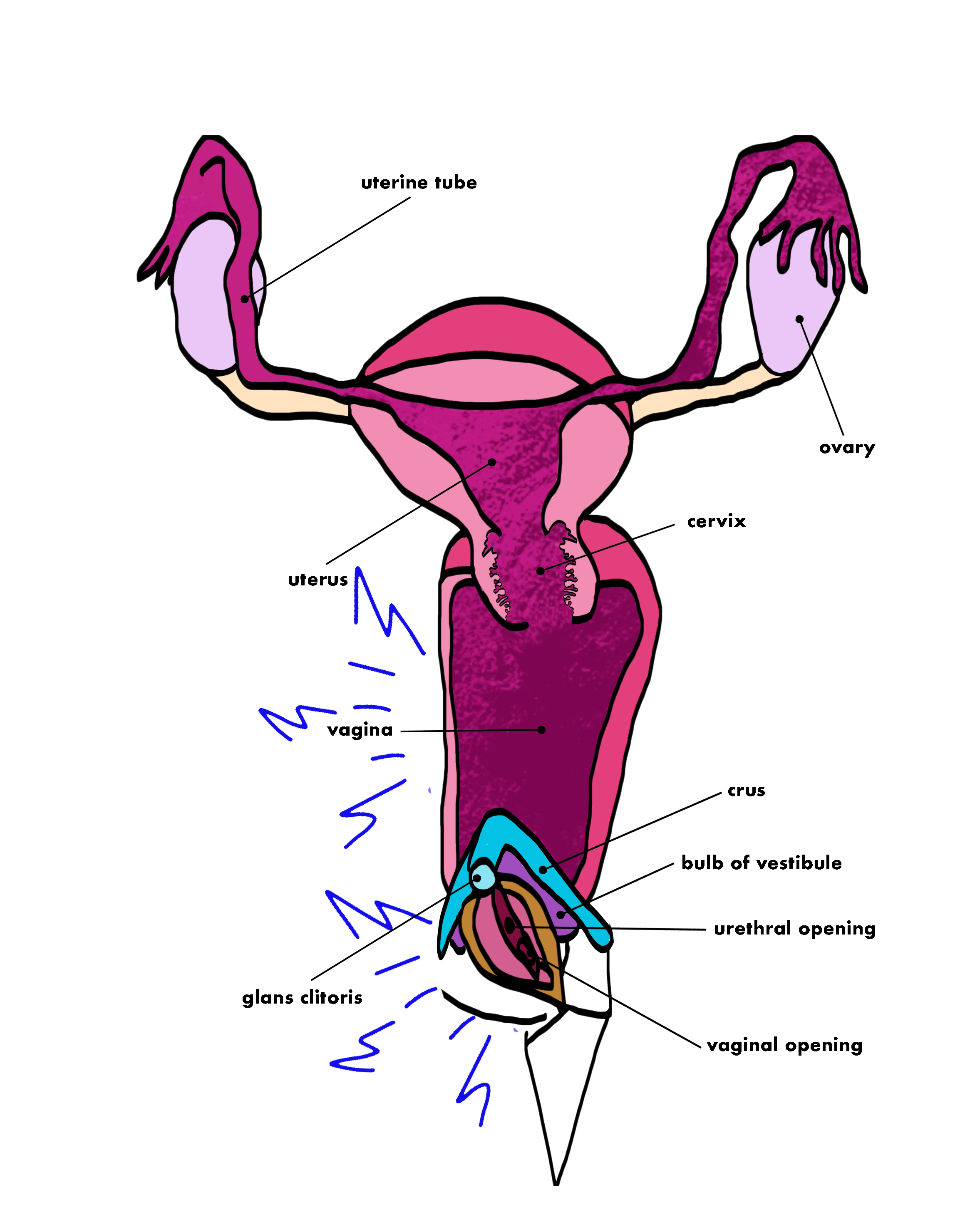 - Sexual arousal fluid is released from the vestibular glands around the vaginal opening