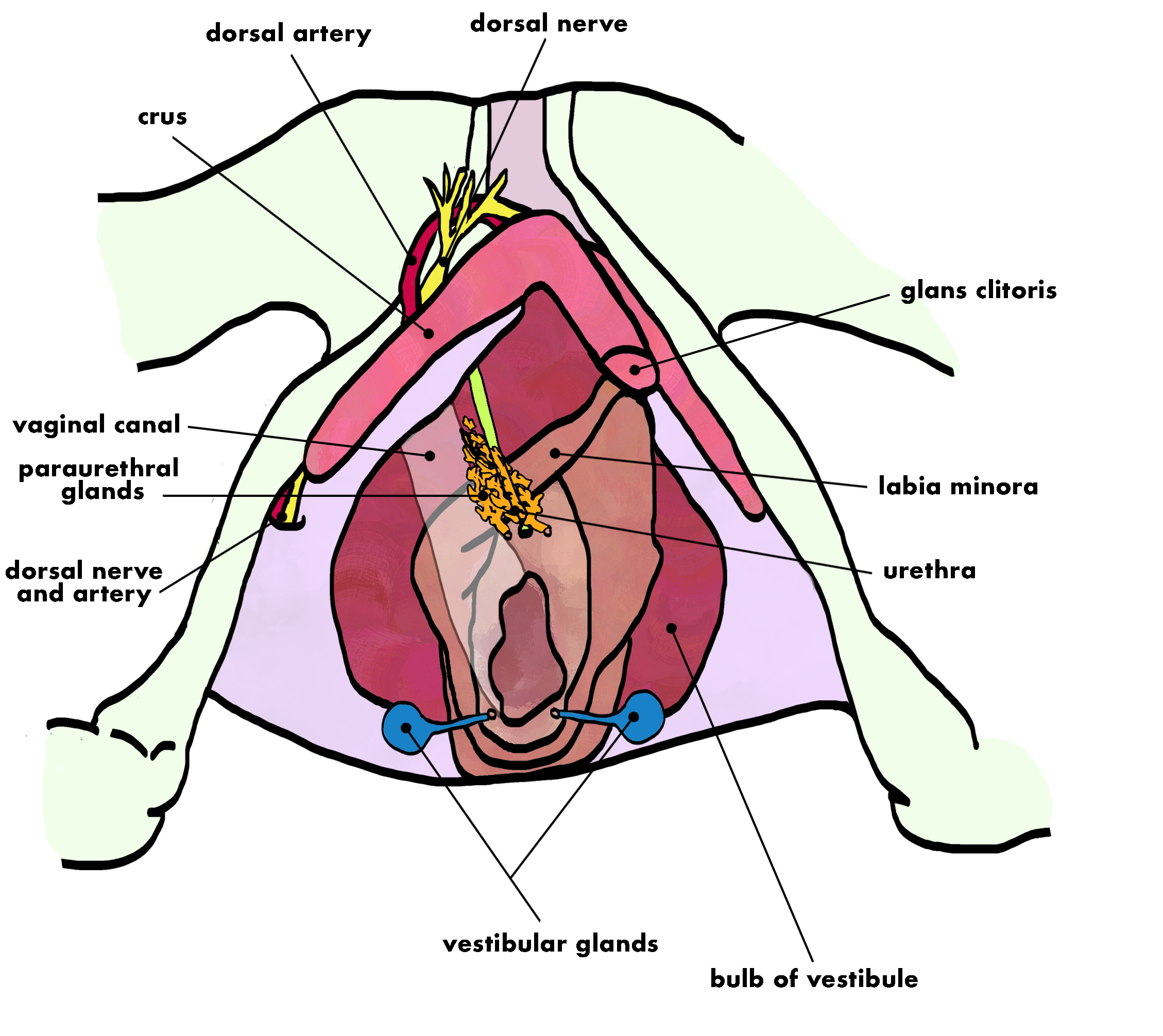 Sexual arousal fluid is released from the vestibular glands around the vaginal opening